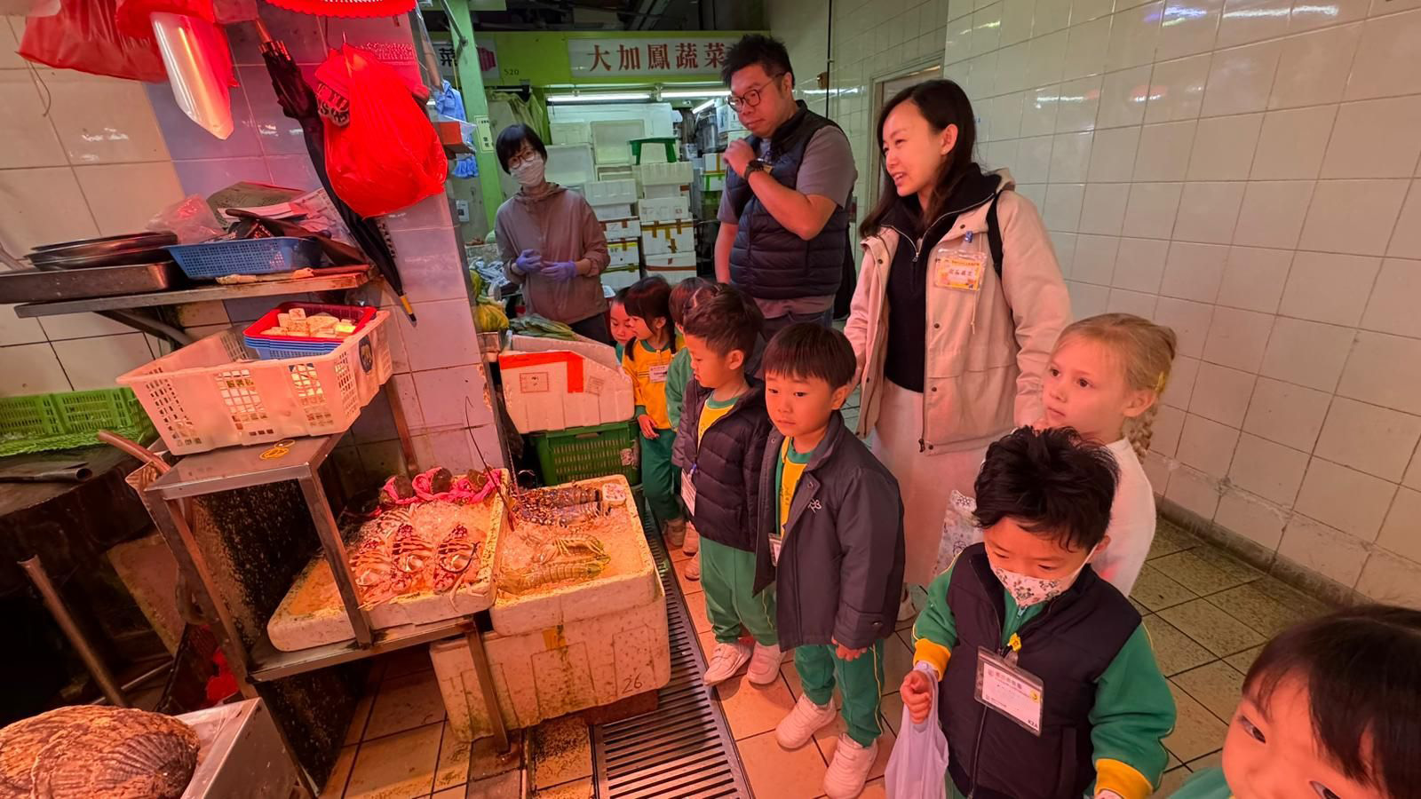 2026年1月13日至15日期间,低班幼儿前往湾仔街市进行参观学习。过程中,孩子们认识了各种新鲜水果与蔬菜,了解它们的种类与来源。街市内设有肉档、干货店及售卖鱼类和海鲜的店铺,商贩们热情地向幼儿介绍食材特点,并与他们亲切互动。