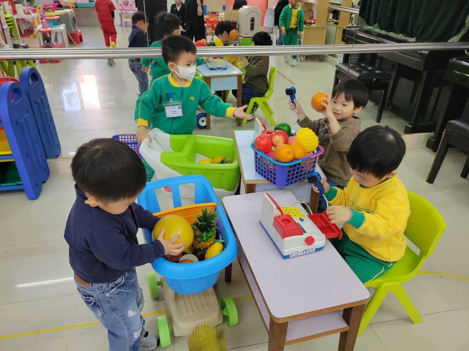 went the extra mile to transform the music room into a cozy home and a supermarket. The children took on the roles of family members, cooking, eating, and sleeping “at home,” and shopping at the “supermarket.” Laughter filled the room as the children experienced the joy of playing family roles, spending a morning filled with love and laughter.
