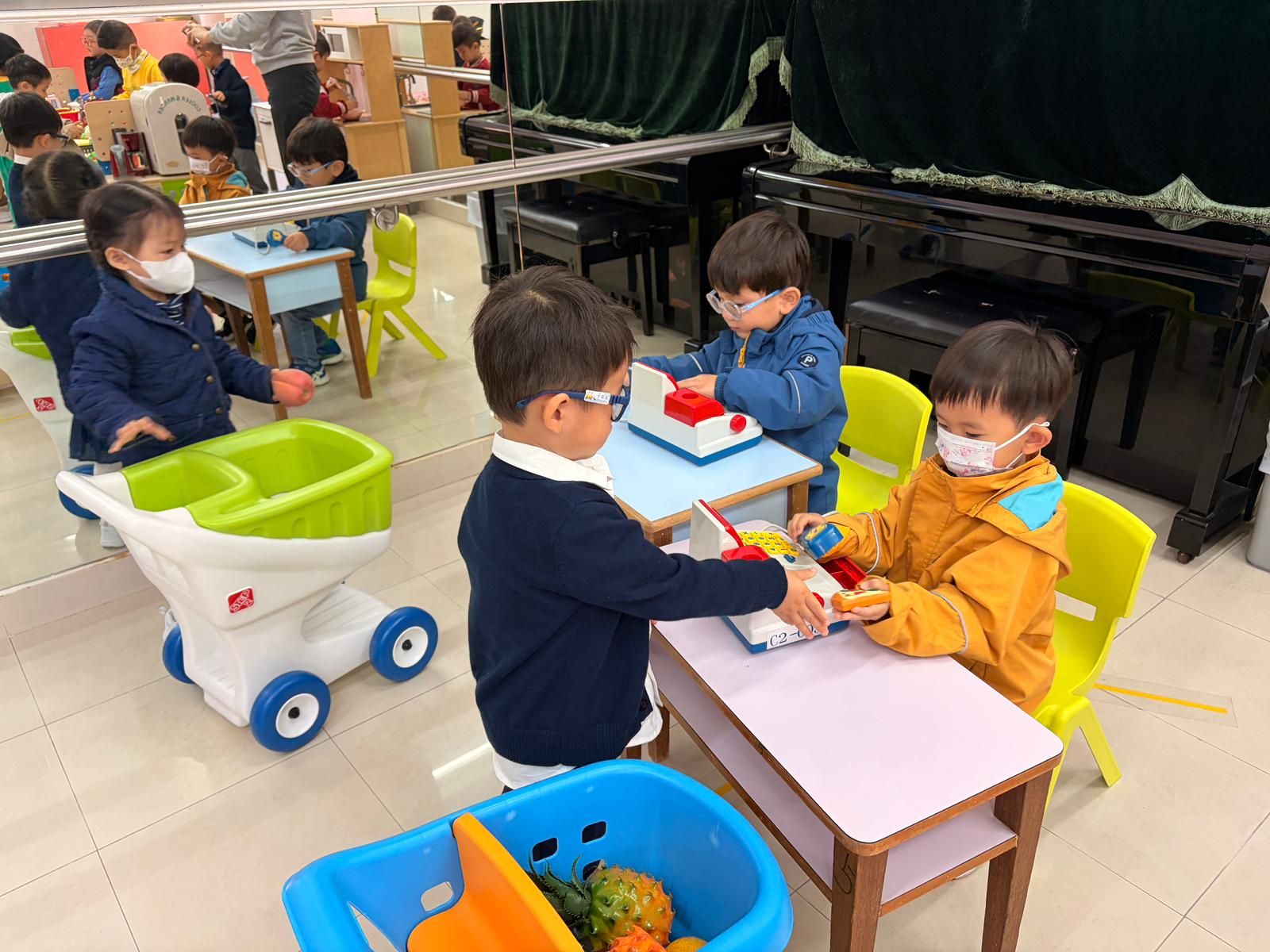 si è impegnata al massimo per trasformare l’aula di musica in una casa accogliente e in un supermercato. I bambini hanno interpretato i ruoli dei membri della famiglia, cucinando, mangiando e dormendo “a casa” e facendo la spesa al “supermercato”. Le risate hanno riempito la stanza mentre i bambini provavano la gioia di interpretare i ruoli familiari, trascorrendo una mattinata piena di amore e allegria.