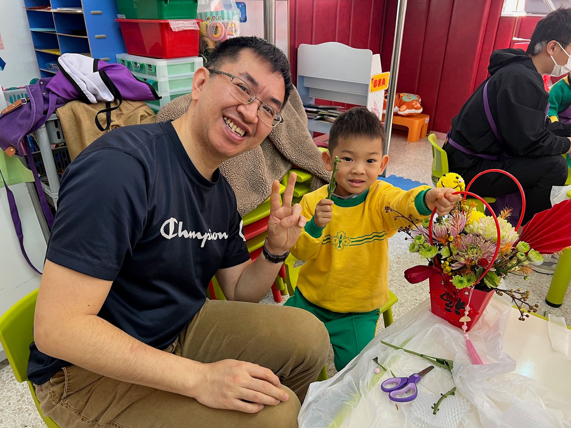 On Saturday, January 17, 2026, our kindergarten successfully hosted the “Chinese Floral Art Parent-Child Workshop.” During the event, parents and children experienced the charm of floral art together, creating colorful floral arrangements with their own hands. Under the instructor’s careful guidance, parents and children immersed themselves in the activity, crafting unique floral pieces imbued with the essence of Chinese culture. The event not only enhanced parent-child interaction and communication but also strengthened family bonds and enriched their quality of life, creating cherished memories of learning together.
