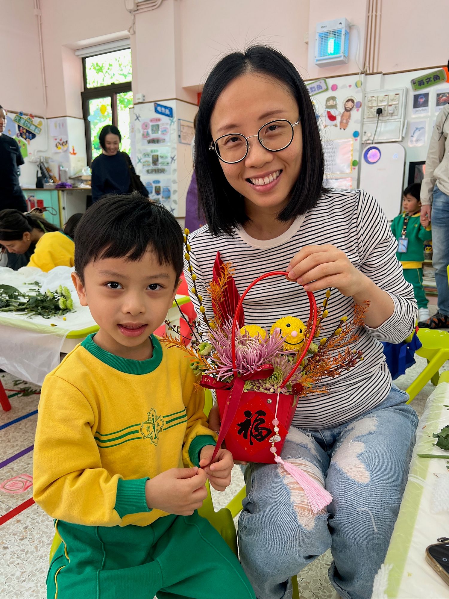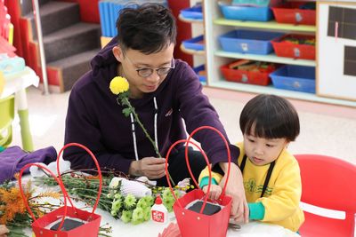 2026年1月17日(星期六),本園成功舉辦「中華花藝親子工作坊」。活動中,家長與幼兒一同體驗插花藝術的魅力,親手創作出色彩繽紛的花藝作品。在導師細心指導下,親子們全情投入,製作出獨一無二、洋溢中華文化氣息的花卉作品。活動不僅增進了親子間的互動與溝通,更提升了家庭的凝聚力與生活品味,為親子共學留下美好回憶。