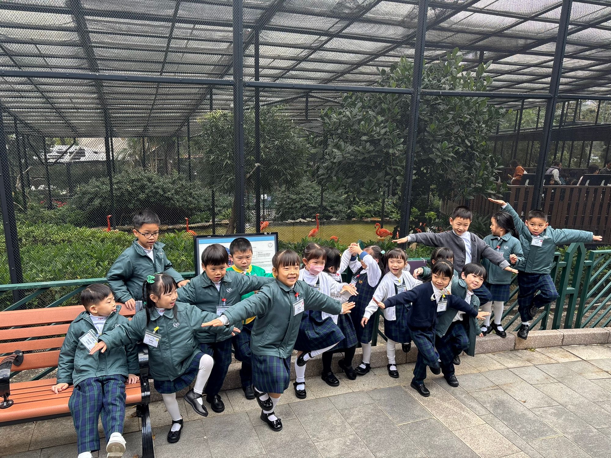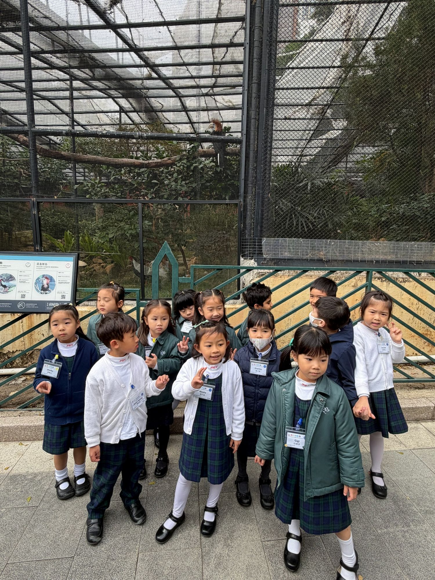 高班幼儿于2026年1月20日前往香港动植物公园进行参观活动,与老师一同欣赏园内各种动植物。当日,幼儿首先观赏了鸟类动物,如蓝黄金刚鹦鹉、美洲红鹳及长冠八哥等;随后又参观了哺乳类动物,包括环尾狐猴、婆罗洲猩猩及棉顶狨猴等多种珍贵濒危动物。