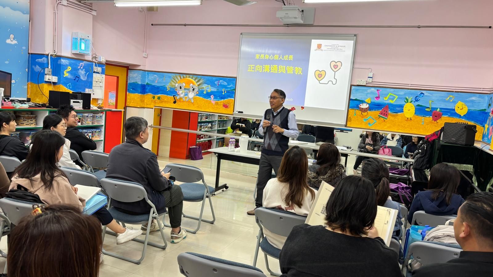 2026年1月30日(星期五)本園舉辦「身心個人成長」家長工作坊,特邀香港中文大學發展主任余國健先生擔任講者。余先生與家長們分享了正向教育的意義與價值,以及善意溝通的技巧與要素,並透過真實個案及影片示範,讓家長學習更多有效管教與親子溝通的方法。是次活動促進了家校合作,共同攜手支持孩子的全人發展。