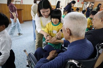 高班小朋友於2月7日(星期六)走入社區,前往黃竹坑聖瑪利安老院,與長者共度一個充滿愛與關懷的早上。孩子們以歌聲與舞蹈獻上祝福,並與公公婆婆一起做十巧操、輕輕按摩及製作新年掛飾,最後送上親手製作的心意卡,傳遞溫暖與愛意。