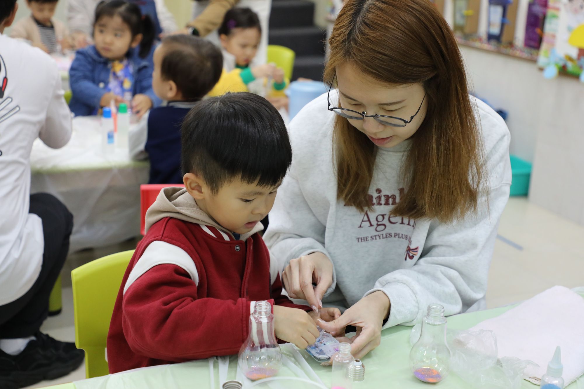 유아들의 감정 조절 능력을 기르고 부모와 자녀 간의 소통과 이해를 증진하기 위해, 우리 학교의 사회복지사인 루오 선생님이 2026년 3월 7일 토요일에 마법 같은 “별을 향한 여행”이라는 부모-자녀 별이 빛나는 하늘 병 만들기 워크숍을 주최했습니다. 행사 당일, 부모님과 아이들은 함께 자신들만의 ‘별이 빛나는 하늘 병’을 만들며 반짝이는 색채 속에서 창의적인 즐거움을 만끽했습니다!
