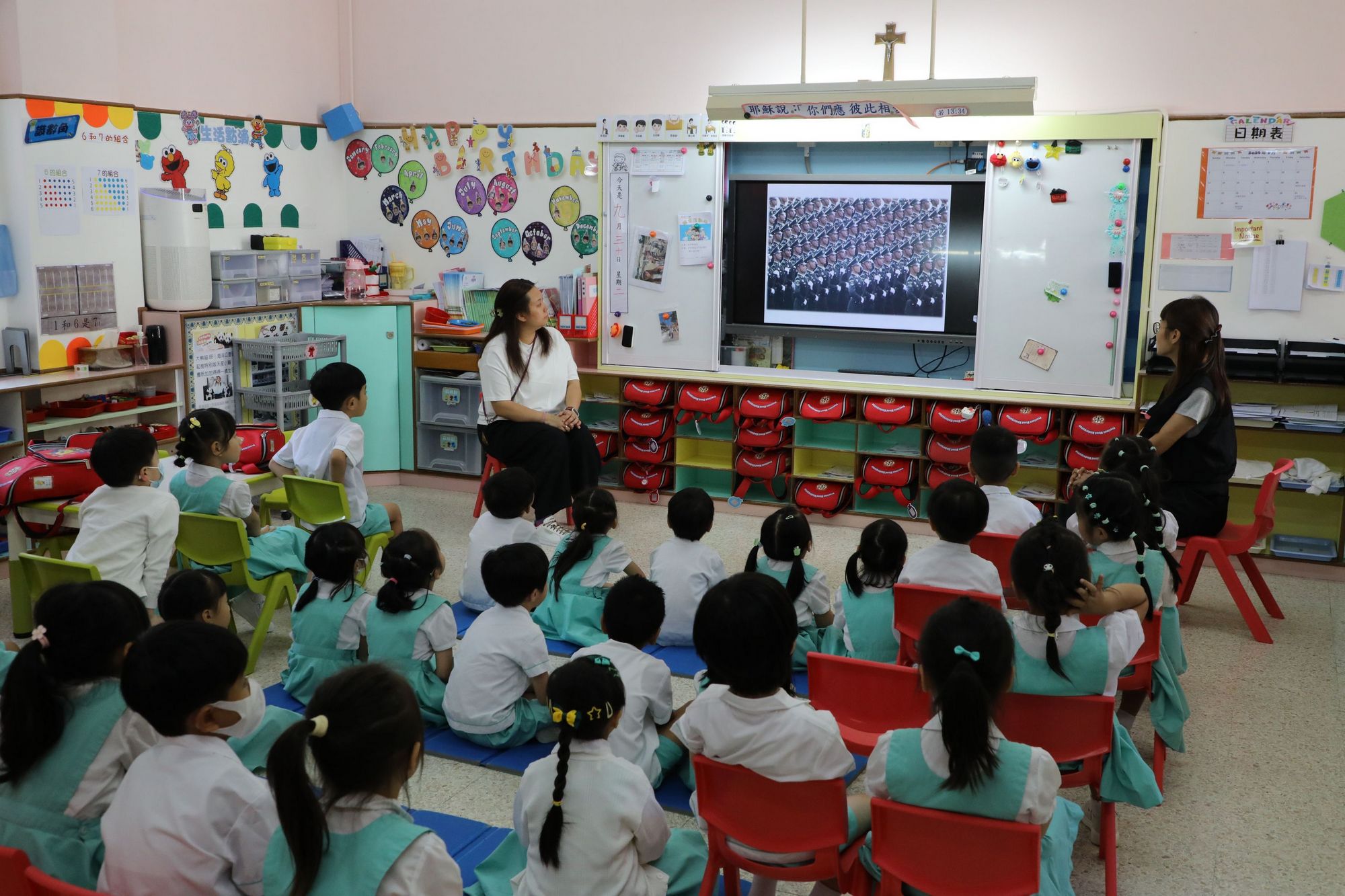 Le 30 septembre 2025, notre école a organisé l'événement « Les enfants célèbrent la fête nationale », invitant les enfants à se joindre à la célébration de l'anniversaire de la nation. En observant la cérémonie de lever du drapeau, les enfants ont appris les règles de bienséance et l'attitude à adopter pour chanter l'hymne national, ce qui a favorisé le respect et l'identification à leur pays. Les enseignants ont également présenté les origines et la signification de la fête nationale à travers des histoires et des vidéos, permettant ainsi aux enfants de vivre la joie de l'événement et d'approfondir leur compréhension de leur patrie.