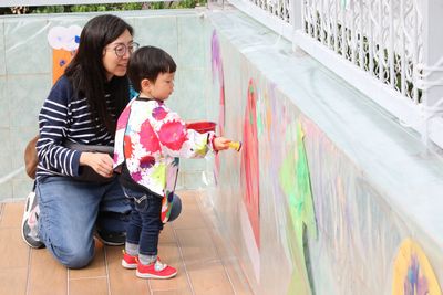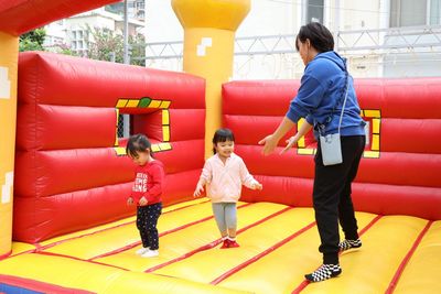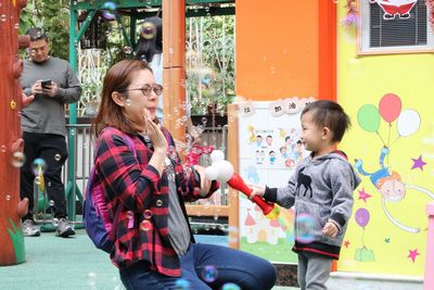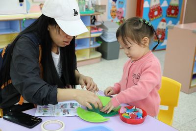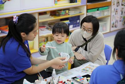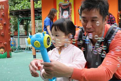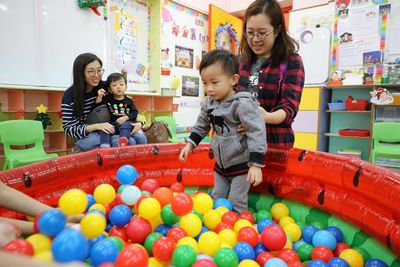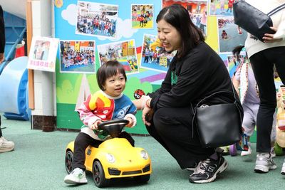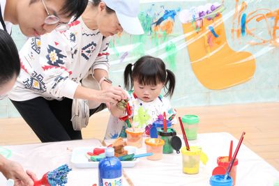 當日設有多項趣味遊戲,包括吹泡泡、手臂印畫(Arm Printing)、跳彈床、繩網陣、聖誕吊飾創作、佈置聖誕樹、畫大筆畫及 Peppa Pig 聖誕皮影戲欣賞等,讓幼兒盡情投入其中。幼兒更與老師一同模擬乘坐校車,體驗乘車上學的樂趣。