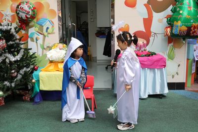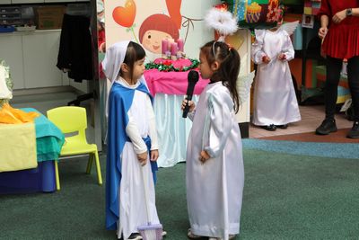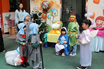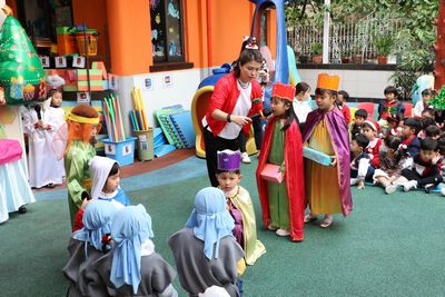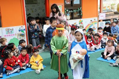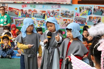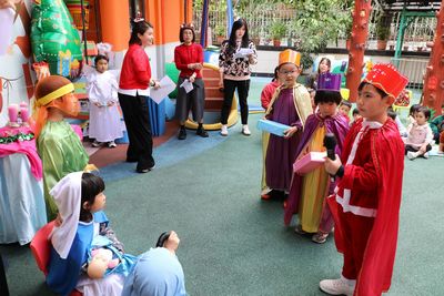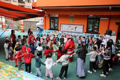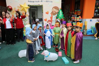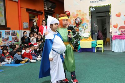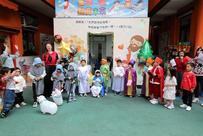 本园于2025年12月19日(星期五)举行「圣诞游戏日」,全体师生齐集操场,一同欣赏由孩子们演出的圣剧,宣扬主耶稣诞生的喜讯,随后更进行互动游戏并载歌载舞,现场洋溢着欢笑声和歌声,气氛热闹融洽。