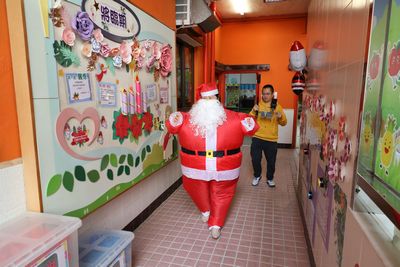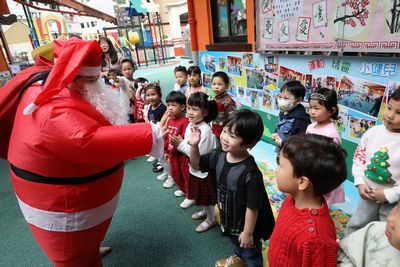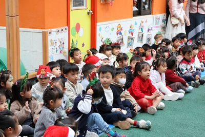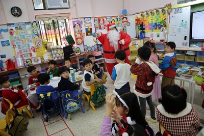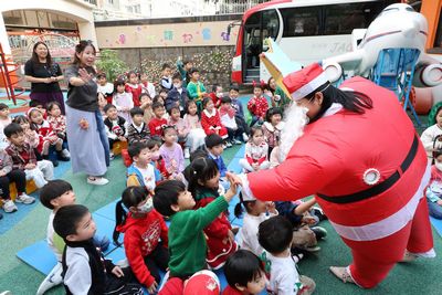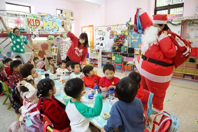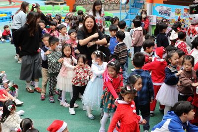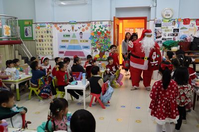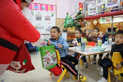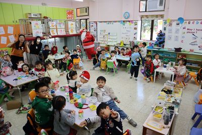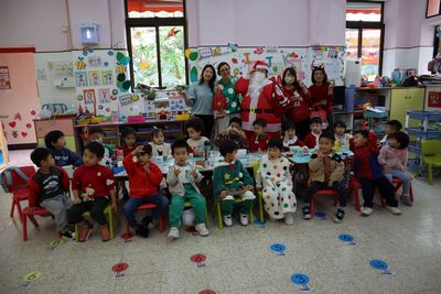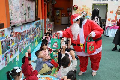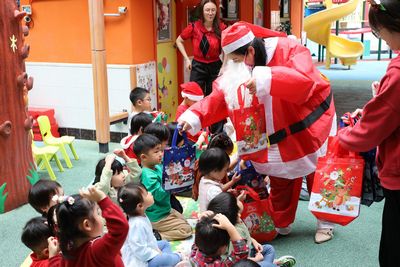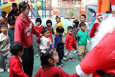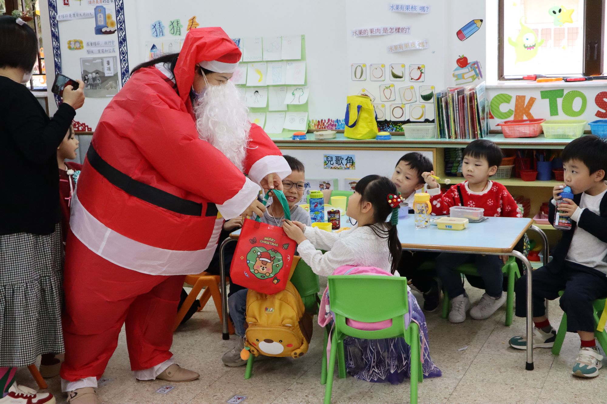 游戏过后,老师与小朋友回到课室举行开心美食派对,大家欢聚一堂迎接圣诞节;圣诞老人亦特意到访宝血幼儿园派发礼物,孩子们都感到无比欢欣,怀着愉悦心情和满满的圣诞祝福回家去。